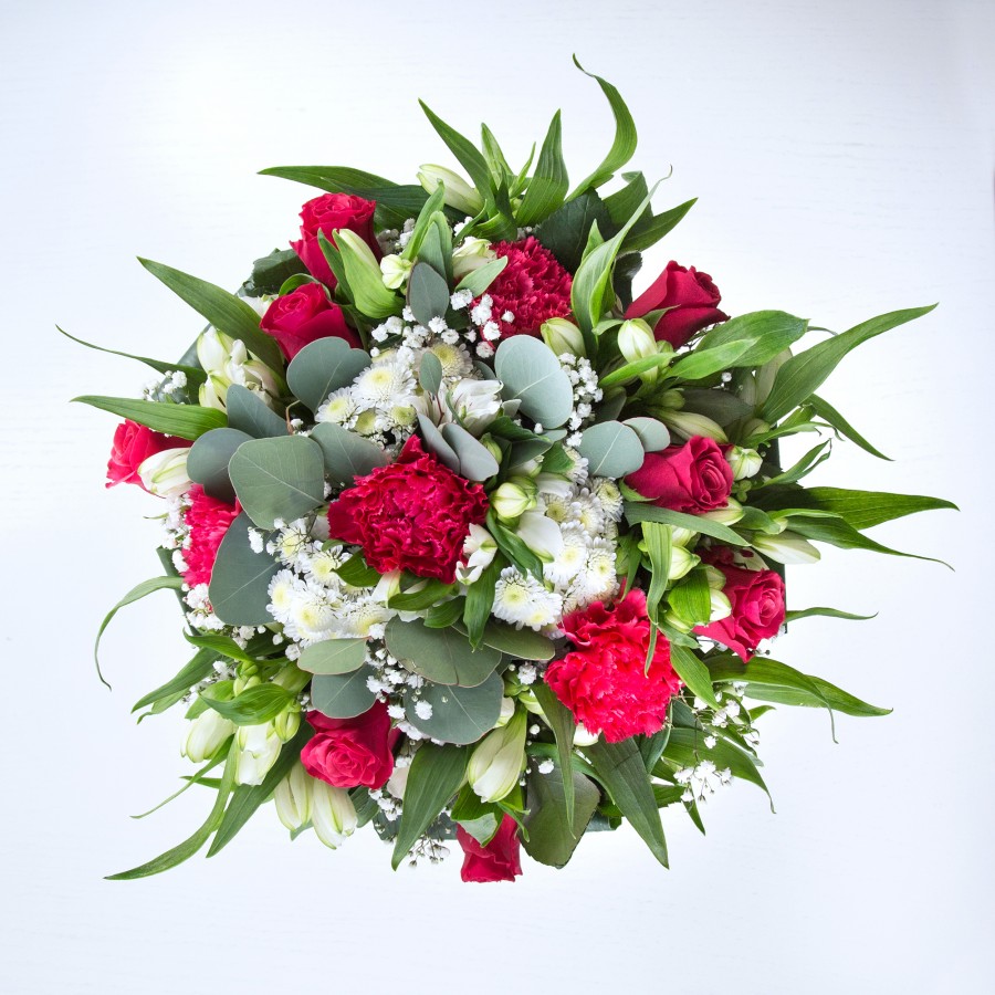 Beautiful Red Roses & White Chrysanthemum Bouquet
